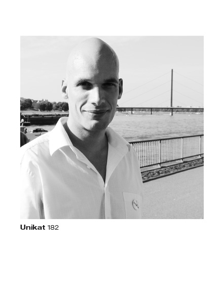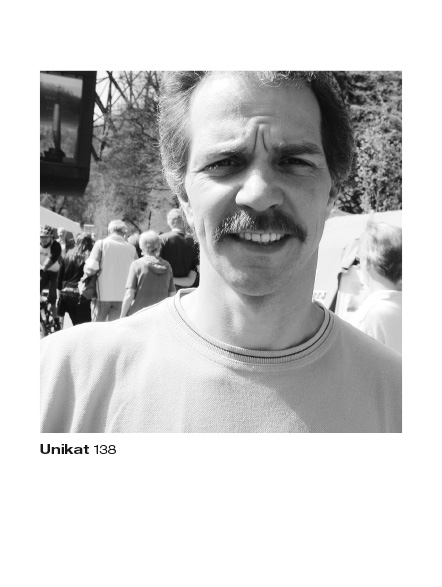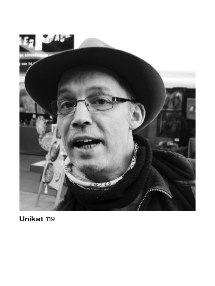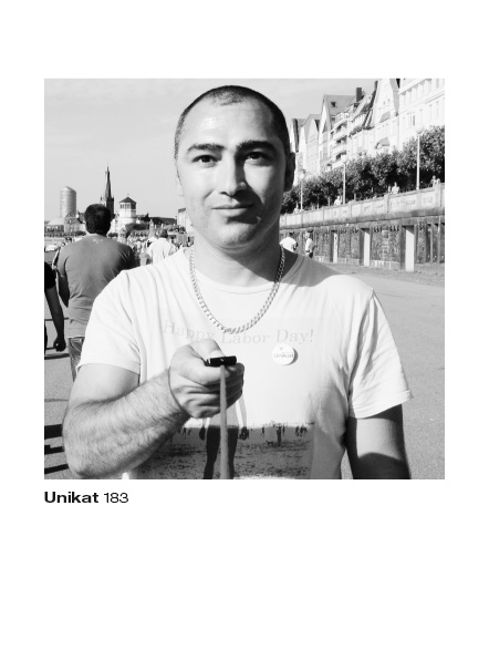 Aktion Unikat Portraitsammlung 2010 - heute ![]() Jeder Mensch ist ein Unikat - daran gibt es keinen Zweifel. Ich bitte Menschen auf der Straße, sich über den Fernauslöser meiner Kamera selbst zu fotografieren und mir die so entstandene "Kopie" ihrerselbst zur Verfügung zu stellen. Ich kündige an, dass ich diese Kopie Das Bewusstsein unkopierbar zu sein, bringt den Stolz der Menschen hervor, wie in den Portraits meiner Sammlung deutlich zu sehen ist. Manche lehnen es aber auch ab, sich für meine Aktion zu fotografieren. Sie befürchten, ihre "Kopie" könne unkontrollierte und ungewollte Informationen im Internet hinterlassen. Pressemappe zum Download ![]() ![]() |