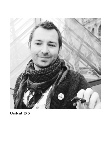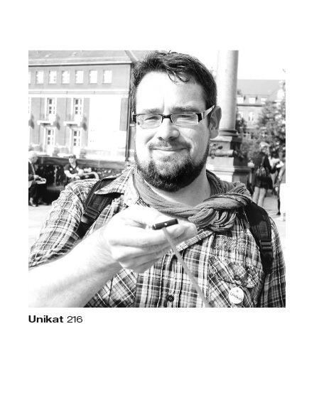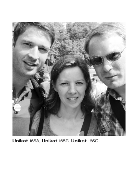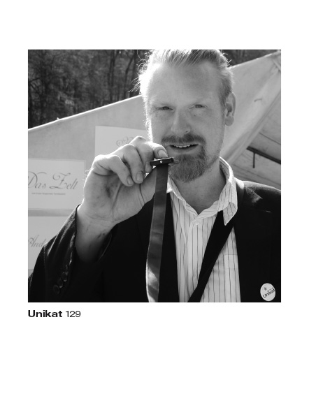 Die Geschichte Links siehst Du das Logo des Museum Plagiarius - ein Zwerg mit goldener Nase - auf das sich die Gestaltung meiner Buttons bezieht. Alljährlich vergibt das Museum Plagiarius in Solingen den "Plagiarius", einen Negativpreis für besonders dreiste Plagiate von Industrieprodukten. Zum Museumsfest am "Tag des geistigen Eigentums" 2010 vergab ich erstmals die Positiv-Auszeichnung "Ich bin ein Unikat" in Form eines Buttons an die Besucher des Fests. Sofort fertigte ich auch eine "Kopie" von diesen Menschen an - mit dem Fotoapparat. 2011 rüstete ich meine Kamera mit einem Fernauslöser aus, sodass die Unikate sich nun selbst kopieren können. Ich sammelte Selbstportraits in Solingen, Köln, Düsseldorf, Berlin und Paris. Ich verspreche, keine Fotos der Personen zu zeigen, die nicht an meiner Aktion teilnehmen möchten oder denen ihr Portrait nicht gefällt. |