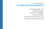 Zahnarztpraxis Dr. med. dent. Oliver Balistrieri, Schützenstraße 150, 42659 Solingen, Telefon 0212-45052, www.zahnarzt-balistrieri.de Zahnarztpraxis Dr. med. dent. Wolfram Herrmann, Bachstraße 40, 40764 Langenfeld, Telefon 02173-72031, www.wolframherrmann.de