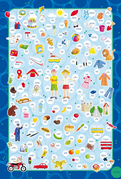 Bettwäsche mit aufgedruckten Vokabeln - das ist neu. Der findige Geschäftsmann Michael Durica hatte die Idee, ich gestaltete die Bettwäsche, Sprachspezialist Pons aus Stuttgart lieferte den sprachlichen Beitrag und der Heimtextil-Spezialist Herding aus Bocholt produziert nun die Bettwäsche. Meine Aufgabe war es, ein für Mädchen und Jungen gleichermaßen ansprechendes Design zu entwickeln. Es sollten die Pons-Hausfarben (Grün und Blau) dominieren und es sollte natürlich auch gut aussehen. Ich arrangierte auf der Oberseite der Bettwäsche eine Auswahl von 126 Vokabeln zusammen mit den Zeichnungen, die die Illustratorin Vera Büggemann für ein Pons-Buchprojekt entwickelt hatte. Dazu gestaltete ich aus wölkchenhaften Kreisflächen und ponsgrünem Konfetti einen Hintergrund für die Motive. Eine ebenfalls ponsgrüne, imitierte Steppnaht hält die Motive zusammen. Die untere Seite zeigt ein ruhiges, träumerisches Muster aus ponsblauen Kreisflächen, ebenfalls mit ponsgrünem Konfetti bestreut. Die obere Seite der Bettwäsche wird in einem Flächendruckverfahren erstellt, während die untere Stoffbahn von der Rolle bedruckt wird und daher das rapportfähige Muster aufweist. Kaum war die blaue Version der Vokabelbettwäsche reif für die Produktion, da begeisterte sich Michael Durica schon für eine weitere Idee: Wie sähe das Ganze in Rosa aus? Ich adaptierte das Design in einer neuen Farbstellung, wobei ich die verschiedenen Blautöne durch bestimmte Rosatöne ersetzte. Sehen Sie auch mein |