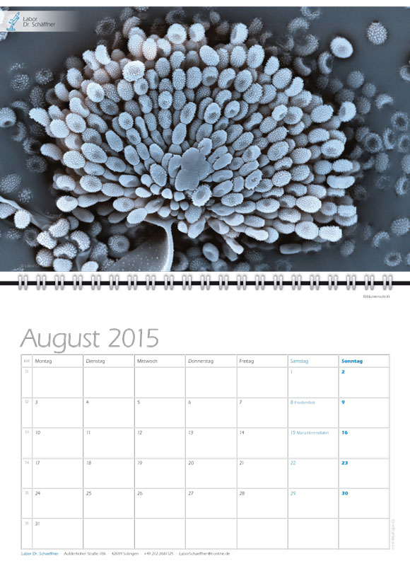 Die mikroskopischen Aufnahmen von Dr. Karl-Heinz Schäffner und seinen Mitarbeitern faszinieren. Als monatlich wechselnde Motive eines Kalenders erfreuen sie die zahlreichen Kunden des Labors.