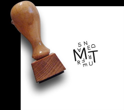 Auf die erste Seite gestempelt kennzeichnet diese kleine Büchermarke die Sammlung eines passionierten Lesers. Ich setzte das Zeichen aus den einzelnen Buchstaben seines Namens zusammen.